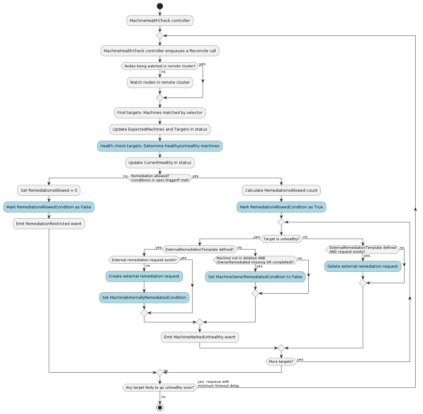 A MachineHealthCheck is responsible for remediating unhealthy Machines.